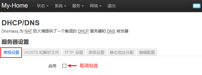 注意:如果要作为旁路网关(旁路由)使用时,则不可使用此方式停用 Dnsmasq 服务器。