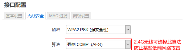 2.4G无线,选择 “强制 CCMP (AES)” 算法。
