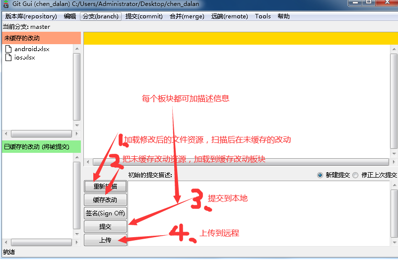 PS:如果需要添加描述信息,就需要在操作前填写(提交时必须填写描述,其他操作可以不填写)