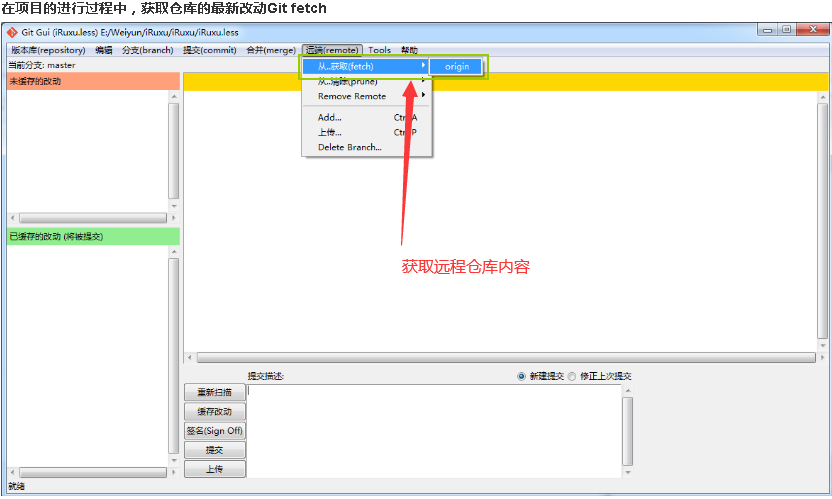 5、把服务器上最新版的代码fetch下来,然后跟自己的主分支合并。