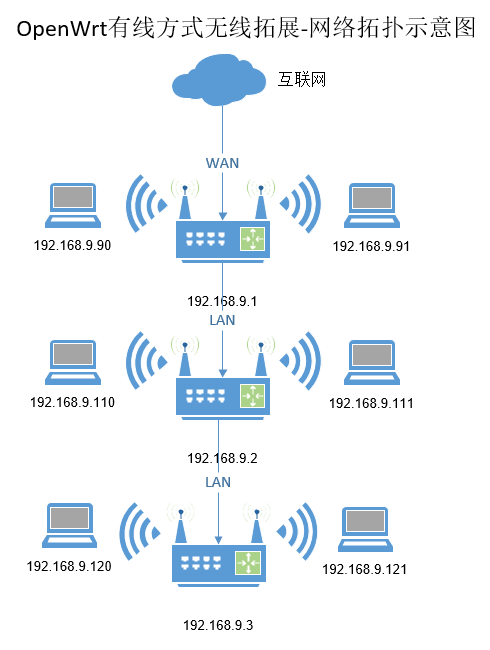 OpenWrt 有线方式无线拓展-网络拓扑示意图