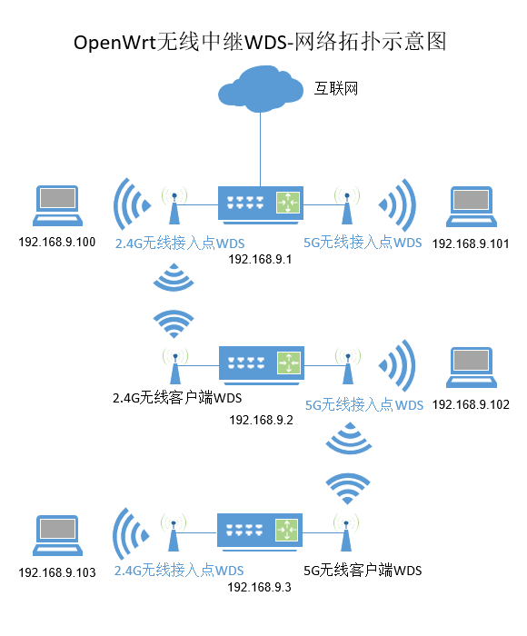 OpenWrt 无线中继 WDS-网络拓扑示意图