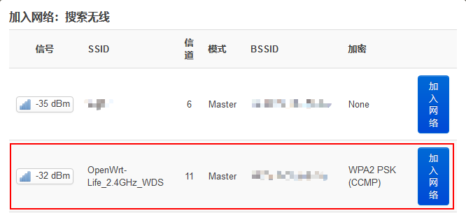 加入上游路由器的 WDS 无线网络。
