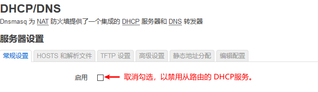 第二步:关闭 DHCP 服务器。(局域网内只能保留一个 DHCP 服务器。)