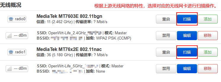 注意:单网卡双模式下完全依赖于上游路由器的信号,一旦无法连接上游无线信号,则路由器将不会发射接入点信号。